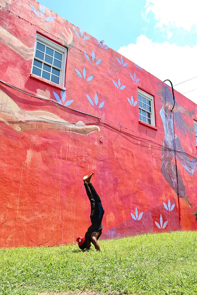 Bear has many positive influences in his life. With the support of his family and his mentor, Dan Ellis at Peachtree Yoga Center, he feels empowered to express his creativity through movement. When asked if he was always drawn to dance, he said yes, and it was his late mother who truly inspired him to use his body as a tool for self-expression. Bear explained that he was an introvert as a teenager, “a Scorpio with the element of water all through his chart,” so he struggled to express himself with words to others. In preparation for his high school prom, Bear and his mother practiced dancing together, and it became an outlet for him to authentically communicate out in the world. Dance is what ultimately led Bear to yoga. In fact, the first asana that peaked his interest was King Pigeon, which he explained is similar to Body Threading in break dancing. From his interest in this asana, Bear’s yoga journey really took off. When he decided to enroll in teacher training in 2018, he knew that he would excel physically, but he was humbled by the inner work the training required. This is where Bear began practicing yoga off the mat. In teacher training, he had to do a presentation on one of the yamas outlined in Patanjali’s Yoga Sutras and the first of the eight limbs of yoga. The yama that he chose was ahimsa, which means non-violence. This piece of yoga philosophy stood out to him because as a break dancer he uses his body in extraordinary ways, some of which over time cause physical harm. He explained that the practice of yoga and implementation of ahimsa, or nonviolence, in his life both physically and mentally allows him to continue living his life to the fullest.